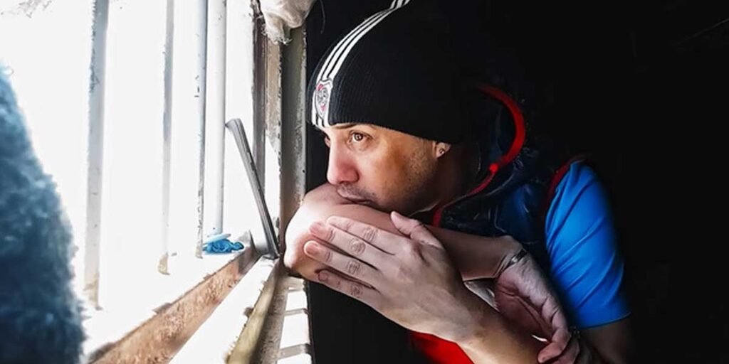 Marcos tiene un celular y Toia tiene una idea. Ellos tienen contacto, a pesar de estar él encerrado en un (varios) penal. Y entonces, Marcos registra. Registra el feliz cumpleaños cantado por sus compañeros a uno de ellos. Registra su relación con aquella novia que ama y extraña, la que le dio el teléfono para filmar, de la que hablará aún cuando ella le diga que ya no puede con la dura situación de estar separados de la manera en que lo están. Registra sus dudas y sus sincericidios respecto del hijo que hace años no puede ver, del que nada sabe; admite en algún momento que si él estuviera enojado, lo entendería, y que quizás no quiere saber nada de su padre. Registra su ninguneo tratando de llamar al juzgado, tratando de obtener un número de trámite. Un ninguneo reforzado por la despersonalizante experiencia de estar encerrado bajo techo de nadie, como frente a un espejo donde el tiempo se desdibuja y uno se ve y se deforma. En uno de los tantos momentos de angustia, describe a la perfección los síntomas de un ataque de pánico. Y en una instancia cuenta lo extraño que fue ver los ojos de una chica, tocar una mano ajena, y sentirse cómodo del todo en intimidad, cuando tiene una visita luego de un tiempo indeterminado de contacto cero. Llega a relatar el miedo de morir enfermo en pandemia dentro de la cárcel y jamás ver a su madre, o de que ella o su familia mueran fuera y él nada pueda hacer.